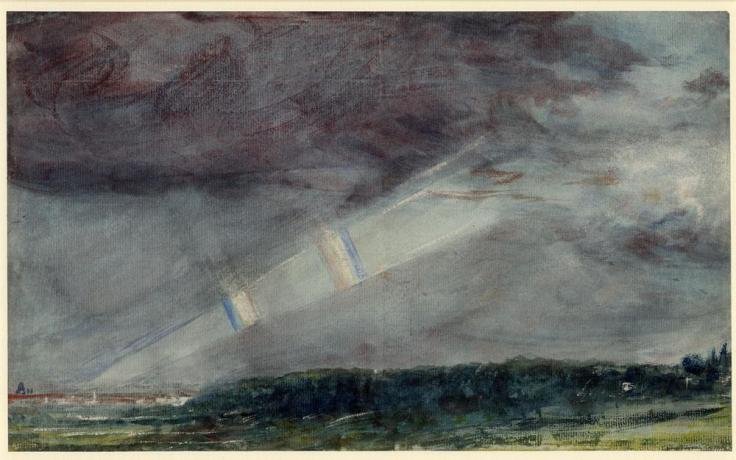 Constable (1776-1837) raakt tegen 1830 steeds meer geïnteresseerd in bijzondere en heftige lichtverschijnselen, waaronder de regenboog. Hij noemt ze “powerfull organs of expression”. Het is gebruikelijk geworden de regenboog bij een van zijn beroemdste schilderijen, Salisbury Cathedral from the meadows, daarom in verband te brengen met de dood van zijn vrouw Maria in 1828. Tenslotte exposeerde hij het schilderij in 1831 voor de eerste maal tezamen met een gedicht van James Thompson, The Four Seasons: Summer. In dit gedicht wordt verteld over de geliefden Celadon en Amelia die tijdens een wandeling overvallen worden door storm en onweer. Amelia wordt getroffen door de bliksem en sterft ter plaatse aan de arm van haar geliefde.