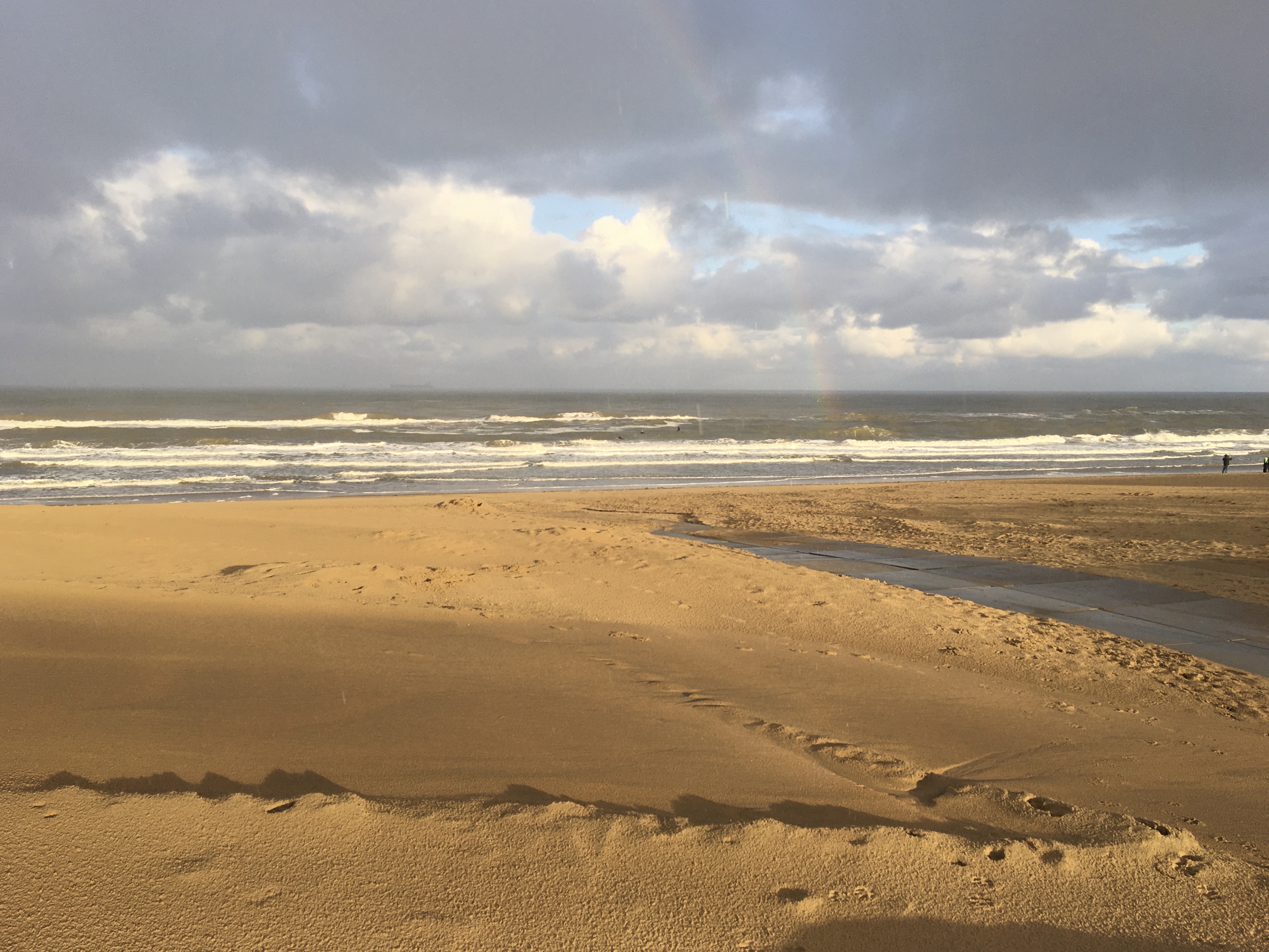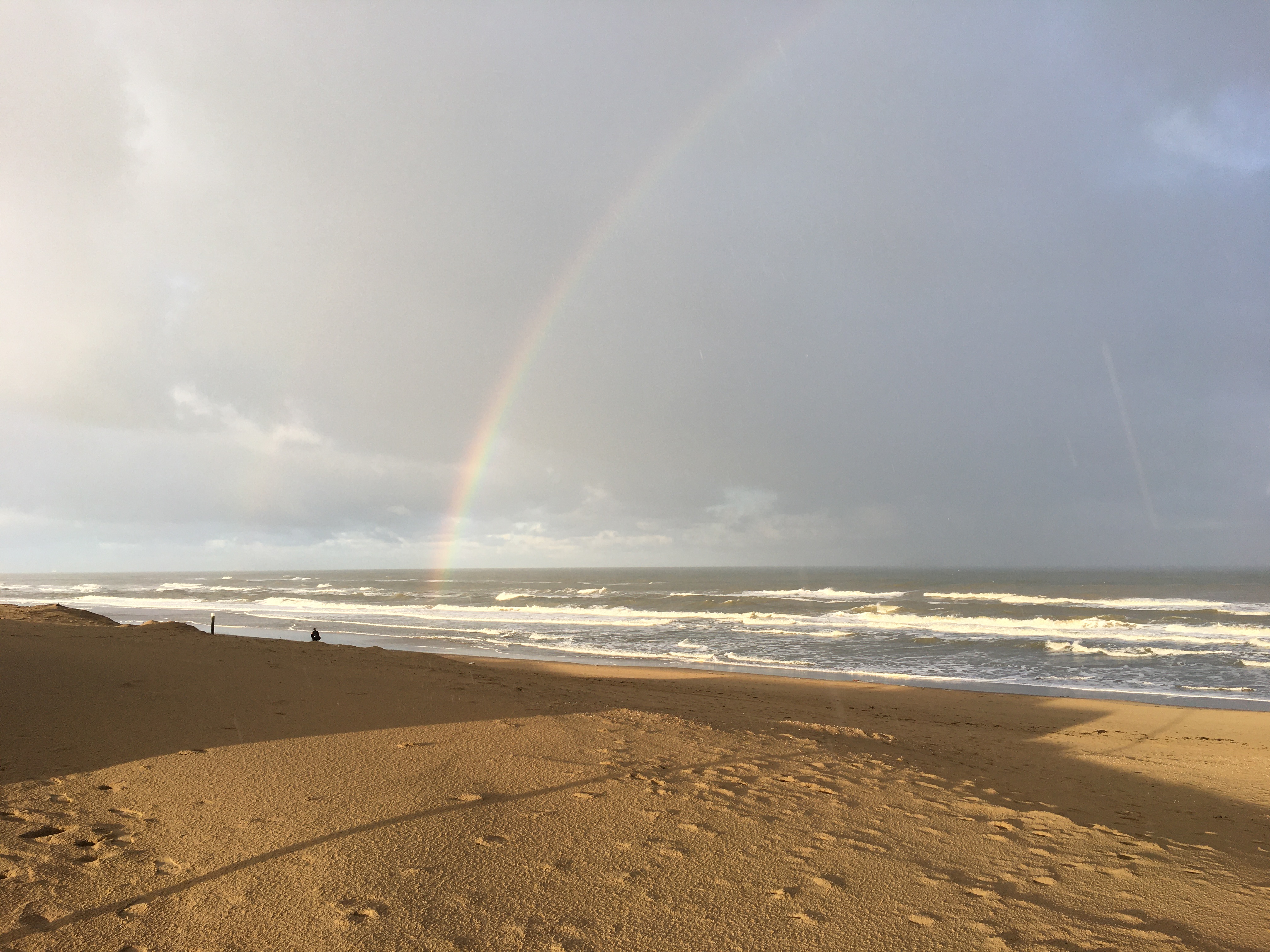 De dag na mijn bezoek aan de tentoonstelling van Constable in Teylers Museum wandelde ik naar zee. Ik stapte het strand op en daar stond hij: de regenboog. Ik kon hem aan twee zijden uit het water zien ontstaan. Wat een prachtig gezicht.