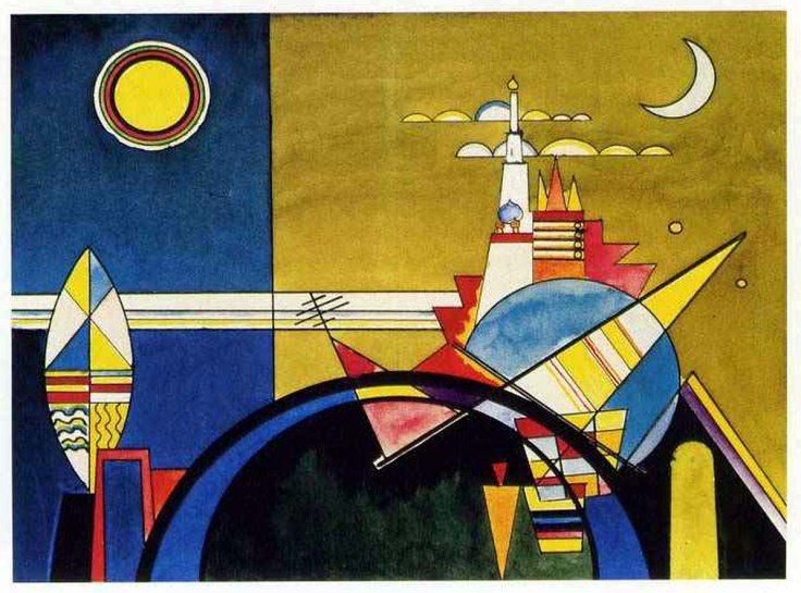 Kandinsky zoekt naar de dissonant in zijn schilderingen. Hij wil daarmee een spanning teweeg brengen die hij hoort bij veel componisten in zijn tijd. - Paul Klee en de muziek